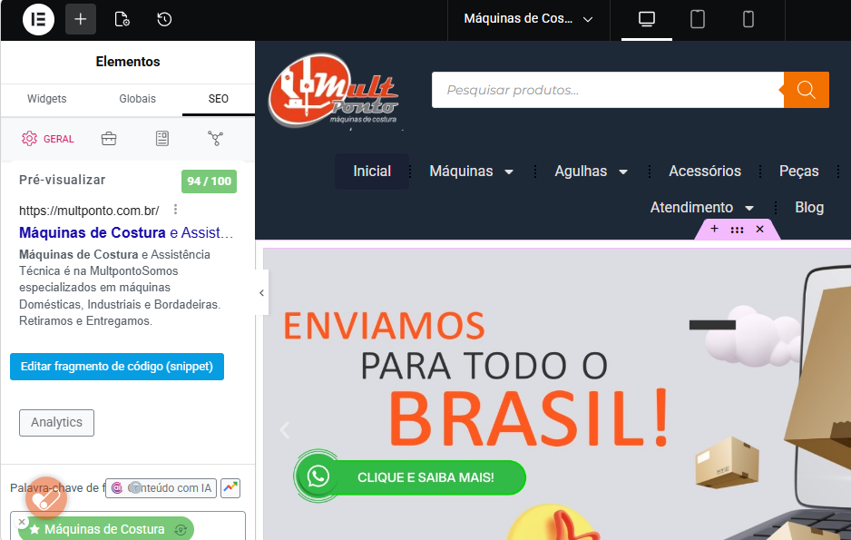• Otimização das páginas de produtos com foco em palavras-chave locais